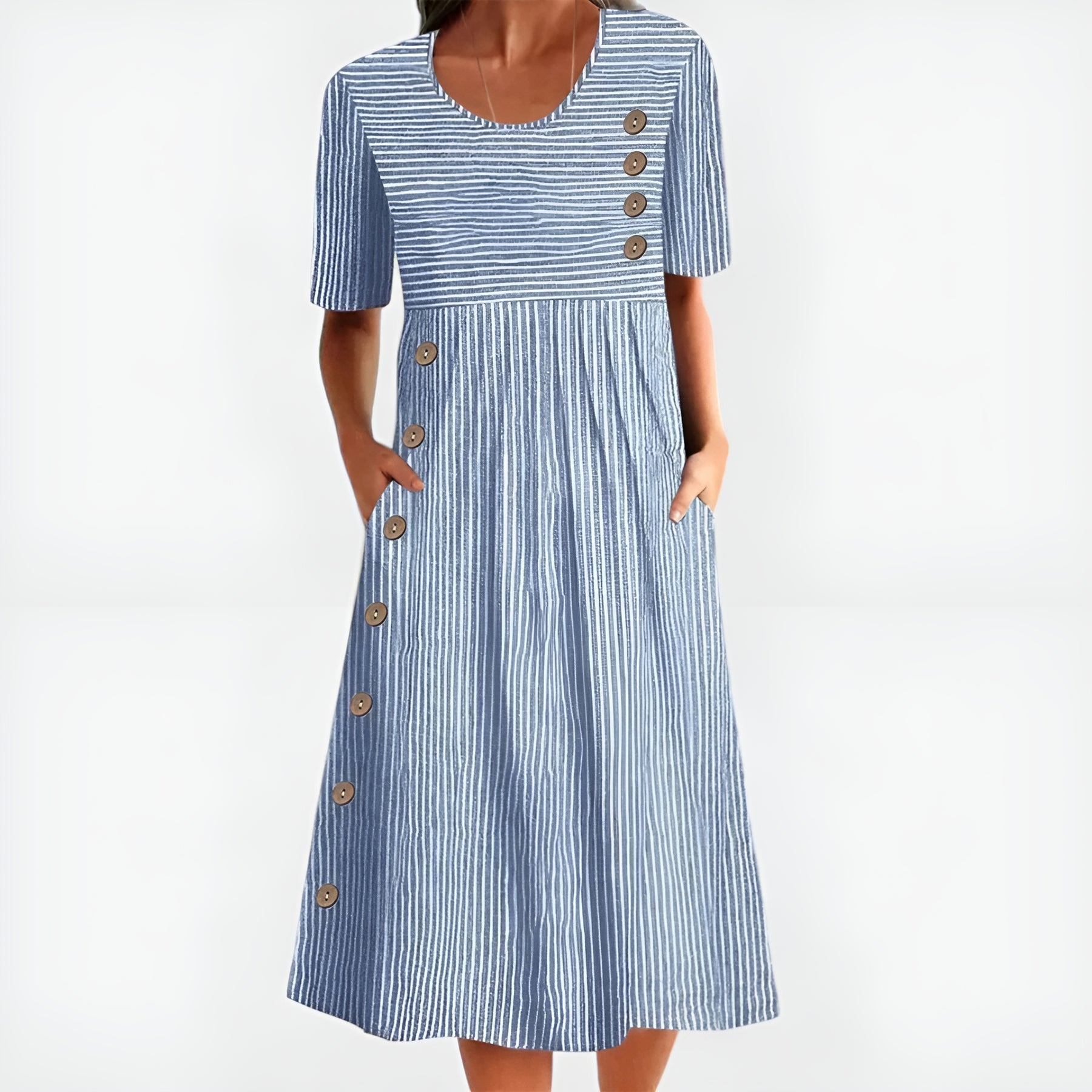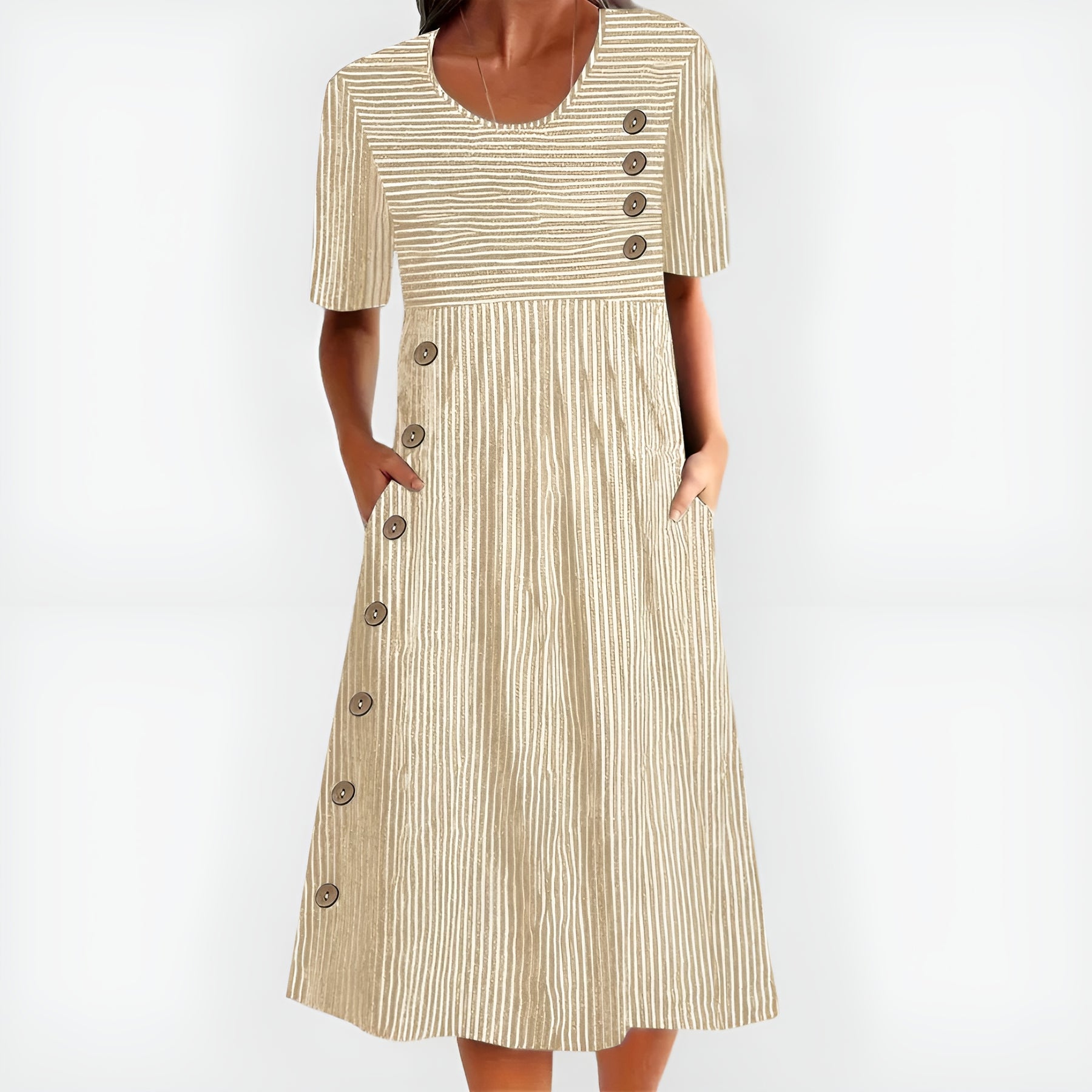 Imagine stepping out on a warm afternoon, the sun on your skin, while your dress flows effortlessly with every move. The Hattie™ Striped Midi Dress isn’t just clothing – it’s the perfect balance of comfort and timeless elegance, designed to make you feel confident no matter where the day takes you.